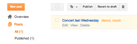 Para eliminar una entrada determinada, solo tienes que ir a la pestaña Entradas de tu Escritorio y situar el cursor sobre la entrada que te gustaría eliminar. Cuando sitúes el cursor sobre ella, debería aparecer el enlace Eliminar; haz clic en él y, a continuación, confirma la eliminación. Para eliminar varias entradas a la vez, marca las casillas que aparecen junto a todas las entradas que te gustaría eliminar y haz clic en el icono de la papelera de reciclaje.